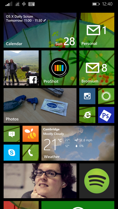 As an alternative I decided to go for something totally unknown - Windows Phone 8.1. I’d heard some good things about it, but had next to no experience of it (or indeed of Windows since I stopped working at Intel some eight years ago), so it seemed like a suitable technological adventure. And given that part of my aim was to compare it to my iPhone, I opted to buy the flagship Windows Phone phone at the time, the Lumia 930 (which, despite being their flagship phone, was actually cheaper than the equivalent iPhone, though still not cheap).